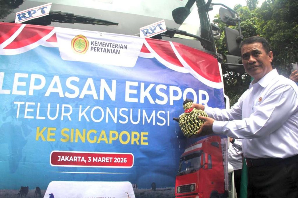 Menteri Pertanian Andi Amran Sulaiman secara simbolis melepas ekspor 545 ton produk unggas ke Singapura, Jepang, dan Timor Leste di Jakarta, Selasa (3/3/2026). (Foto: Ist)…
