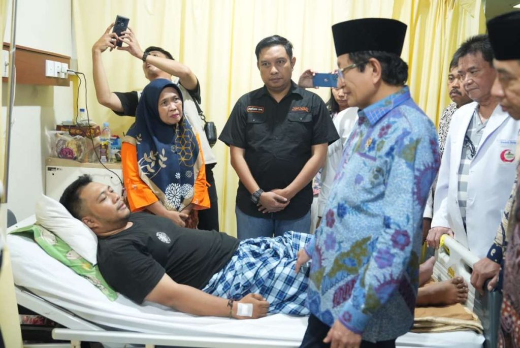 Menag Nasaruddin Umar menyapa salah satu korban luka di RS Grestelina, Minggu (31/8/2025).(Ist) MAKASSAR, NP — Menteri Agama Nasaruddin Umar menjenguk sejumlah korban kebakaran Gedung…