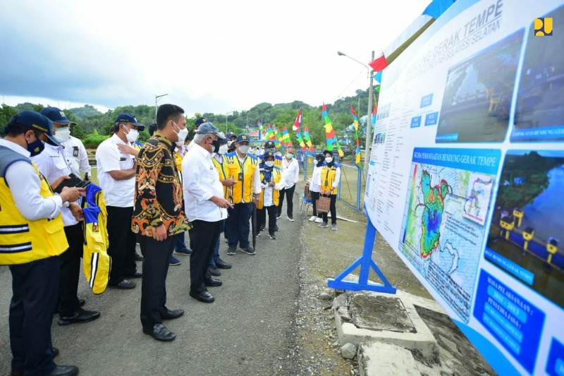 WAJO, NP – Di sela-sela persiapan peresmian Bendungan Paselloreng dan Bendung Gilireng, Menteri Pekerjaan Umum dan Perumahan Rakyat (PUPR) Basuki Hadimuljono meninjau Bendung Gerak Tempe…