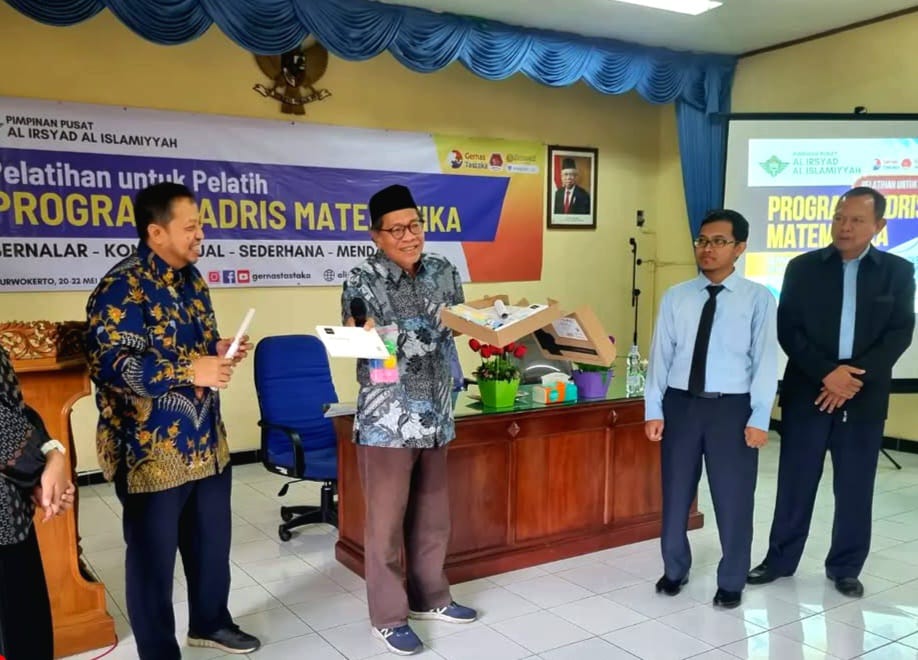 Wakil Ketua Perkumpulan Nusantara Utama Cita (NU Circle) Ahmad Rizali (batik/kopiah) saat membuka Program pelatihan Tadris Matematika. Program ini merupakan pelatihan numerasi bagi guru sekolah…