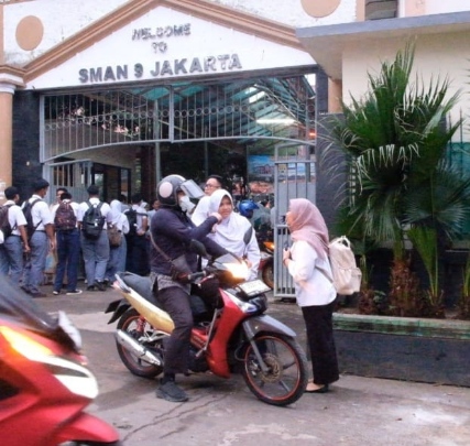 Momen kehangatan antara orang tua dan anak diabadikan saat Menteri Wihaji meninjau Gerakan Ayah Mengantar Anak di SMAN 9 Jakarta.(Ist) JAKARTA, NP – Menteri Kependudukan…