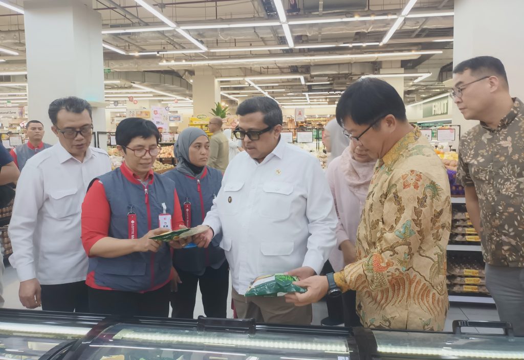 Kepala Badan Penyelenggara Jaminan Produk Halal (BPJPH) bersama rombongan Ahmad Haikal Hasan saat meninjau sekaligus pengawasan langsung produk di ritel modern Gandaria City, Jakarta, Selasa…