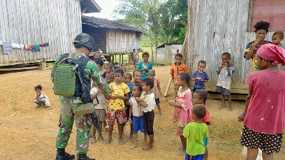 KEEROM – Untuk memutus mata rantai penularan penyakit dan mencegah terjadinya kecacatan akibat penyakit kaki gajah (Filariasis), Satgas Pamtas Yonif 126/Kala Cakti Pos Yuruf bekerja…