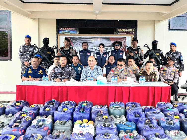 Sinergi TNI AL Bersama Polres Aru dan Forkopimda Musnahkan 2.305 Liter Miras Ilegal di Kepulauan Aru