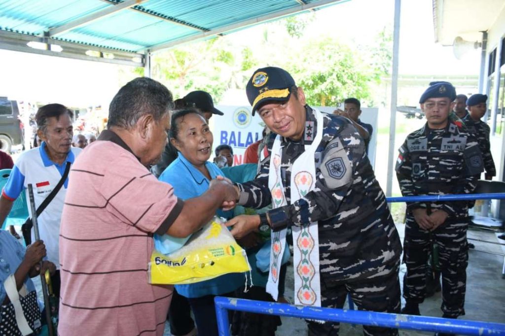 Dankodaeral VIII Laksda TNI Dery Triesananto menyerahkan bantuan sembako kepada warga Melonguane, Selasa (27/1/2026), dalam rangka Bakti Sosial TNI AL. (Foto: Ist) JAKARTA, NP —…