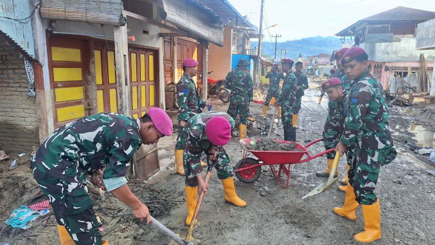 Prajurit Marinir bekerja tak kenal lelah membersihkan lumpur dan puing, memulihkan Tapanuli Selatan pascabanjir dan longsor. (Foto: Ist) TAPANULI SELATAN, NP — Korps Marinir TNI…