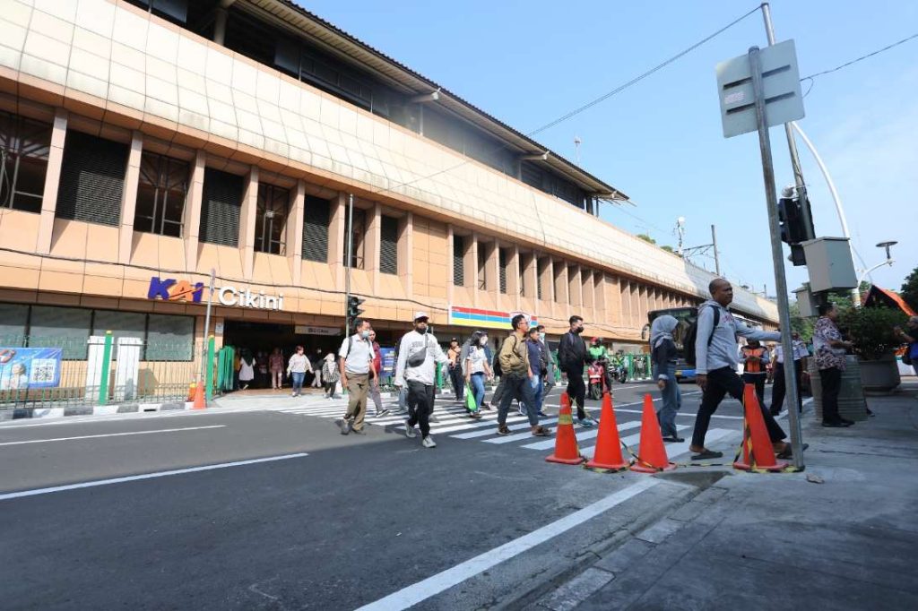 Pengguna jalan melintas di pelican cross yang baru dipasang di depan Stasiun Cikini.(Ist JAKARTA, NP — PT Kereta Api Indonesia (Persero) Daerah Operasi 1 Jakarta…