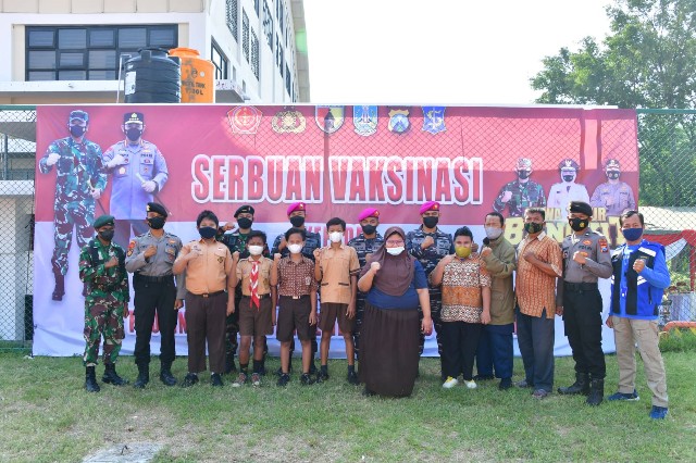 JAKARTA, NP – Harmonisasi TNI AL dengan semua elemen bangsa, baik militer dari kesatuan TNI AD, TNI AU, Polri, Pemerintah Daerah dan para ulama serta dukungan masyarakat menjadi jaminan kesukseksan program pemerintah. Hal ini terbukti saat pelaksanaan kegiatan vaksinasi massal di Surabaya bertempat di Lapangan Thor Surabaya dan Bandara Juanda Surabaya, Jawa Timur, Jumat (15/10).